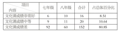 表2.黄石市第十七中学留守儿童文化课成绩情况