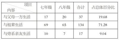 为了将黄石地区农村学校的留守儿童现状搞清楚,同时也为更好地推进农村学校的教育工作,笔者通过问卷调查、走访等形式,对黄石市第十七中学留守儿童的生活和教育状况进行了专题调查。本次问卷调查的对象是黄石市第十七中学的留守儿童,共发放问卷250份,回收有效问卷188份(详见表1.2.3.4)。同时,笔者一共走访了50户农村留守儿童家庭。