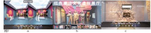 挖掘三线精神中新时代大力弘扬的奉献精神、奋斗精神这一历久弥新的文化内核,记忆符号的多维呈现需借助物态空间的气氛营造和精神空间的感染力,着重营造虚拟文化空间,增强不同记忆符号之间交互性,降低其内在认知负荷。凸显三线建设历程时间尺度变化特征,强化“软记忆”与“硬记忆”三线文化记忆空间内容数字化呈现。如攀枝花中国三线建设博物馆VR展厅(图7a),为用户提供了虚拟参观空间,可与虚拟展品进行交互;攀枝花中国三线建设博物馆的虚拟数字博物馆(PC端)设有红色文化体验区(图7b),以人脸识别技术增加实时互动和评价反馈弹幕功能(图7c)等,以技术手段挖掘三线文化记忆的多功能表达可能性,以数字体验制造专属记忆、促进记忆延续,以符号语言的艺术性转化进一步引起情感共鸣,以具身体验完成“通向文化记忆的特别通道”,推动大众对三线文化记忆形成有效沟通与群体认同[20-21]。
