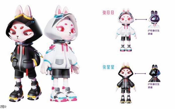 相当数量的三线工业遗址保存较完整的厂区、厂房等原真物理空间,如宜昌809微度假小镇保留了全部的厂房,职工宿舍楼、食堂、球场等完整的社区设施,工业景观体现了强烈的时代风貌;湖北5133厂则以建设指挥部、铁路专用线、工房、工人俱乐部等核心建筑物完整呈现军工产品的生产布局、运输仓储及职工生活。依托原貌厂区、大型工程设施等形成的意象系统进行数字化采集,借助数字技术打造虚拟文化空间,可与物理现实空间形成双向互济。发展在线旅游,将俱乐部、灯光球场、厂门等代表“工业乡愁”的典型建筑样式进行全息复刻,同时展示生产设备、生活用品,利用人工智能、AR和VR等技术与互动装置设置数字展厅、红色影院、云思政空间,完成场景的功能转换,即生产功能转向教育、娱乐功能,以全息唤醒强共鸣。创建虚拟三线IP人物,以“数字人”漫步虚拟三线空间、与其他“数字人”完成虚拟任务的方式,形成角色认同。以“那年那兔忆三线”作为“三线数字人”IP形象的主题(图9),突出科技风,彰显出三线时期人民的艰苦奋斗、勇于创新的三线精神和鼓足干劲、力争上游的精神面貌[23]。